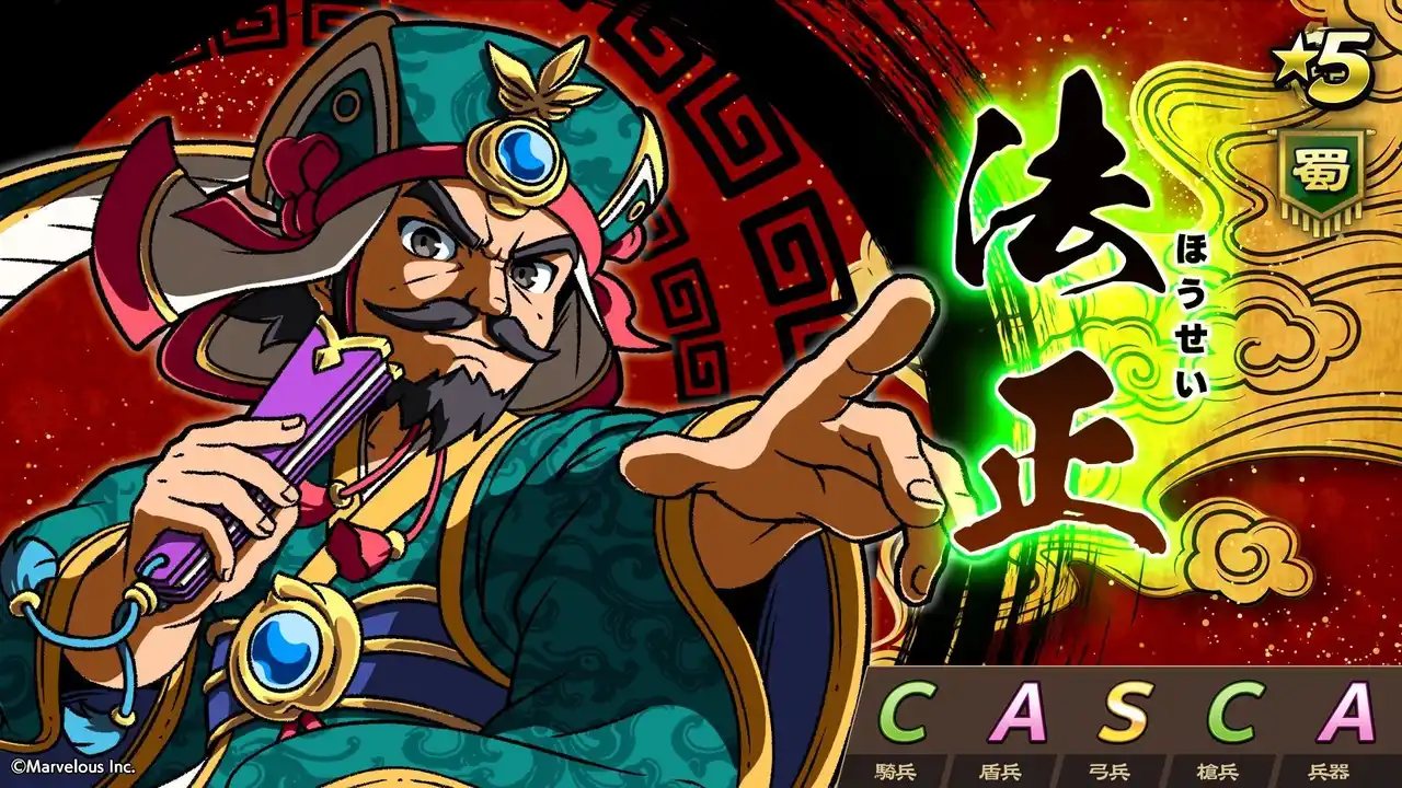 《法正》は固有スキルで麻痺状態の武将に計略低下&全体ダメージを与える計略タイプ! |