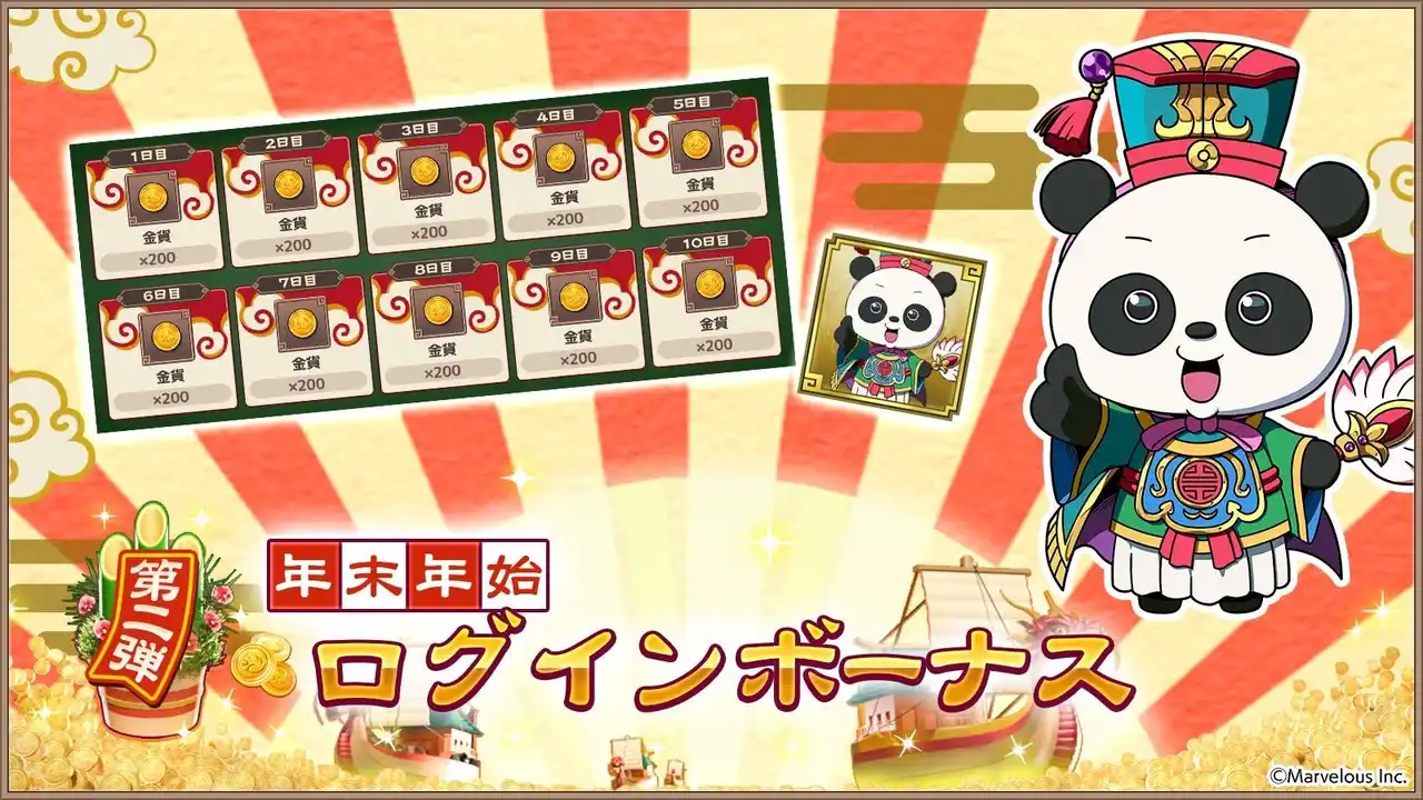 開催期間中に10日間ログインして、★5[強化用]パンダ、金貨を獲得しよう! |