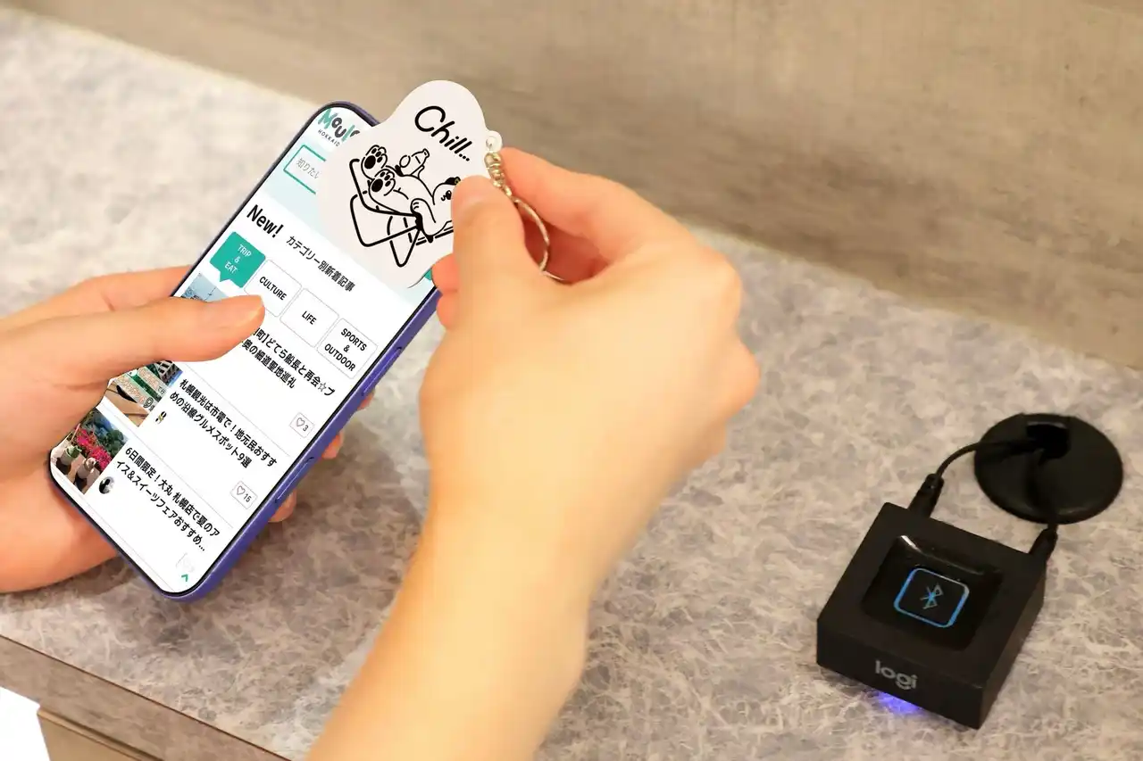 KiiTE(ミテキイテ)」の商品を実際に触れて体験できるイベントを2025年7月11日(金)から8月31日(日)まで、個室サウナ施設「フミノサウナ」にて開催いたします。期間中、サウナ利用者は、無料貸出アメニティとしてICチップ内蔵のアクリルキーホルダーを持ち込むことができ、スマホをかざすだけでサウナ空間に合うBGMを簡単に流すことができます。 |