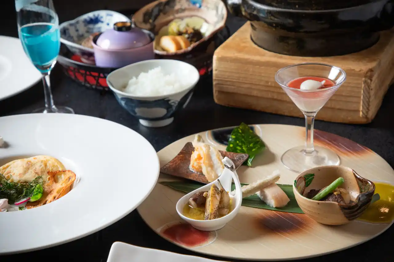 | 半個室食事処にて、和洋創作会席「季節のお献立」 | ||||