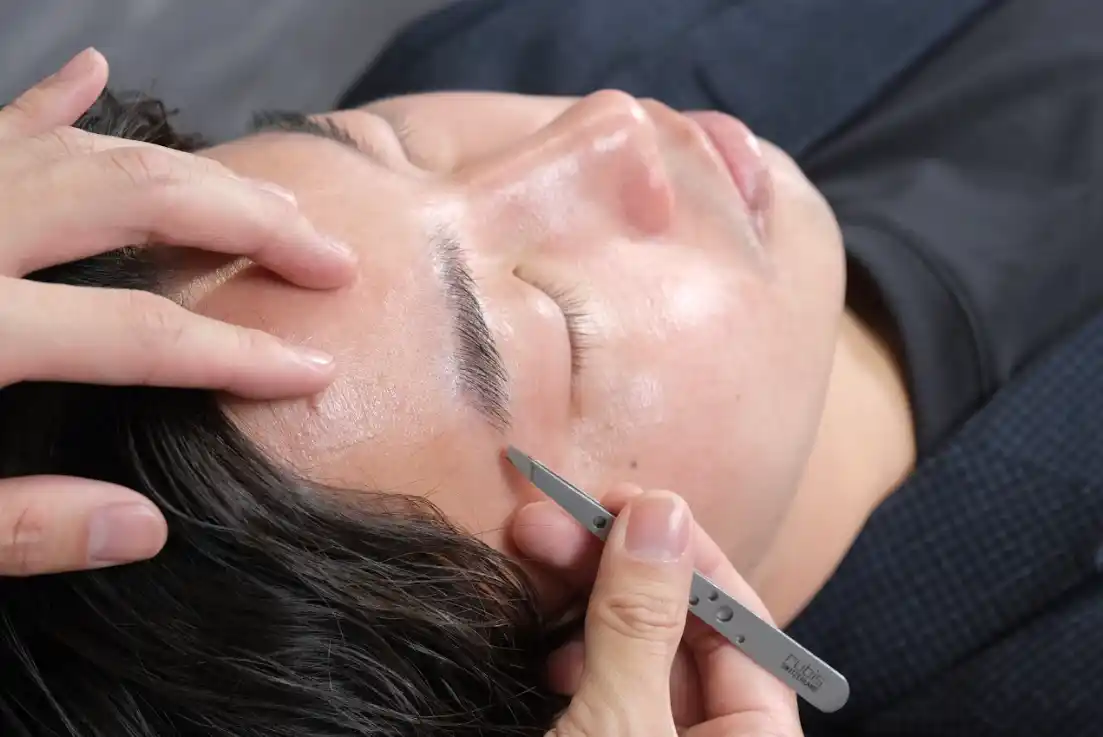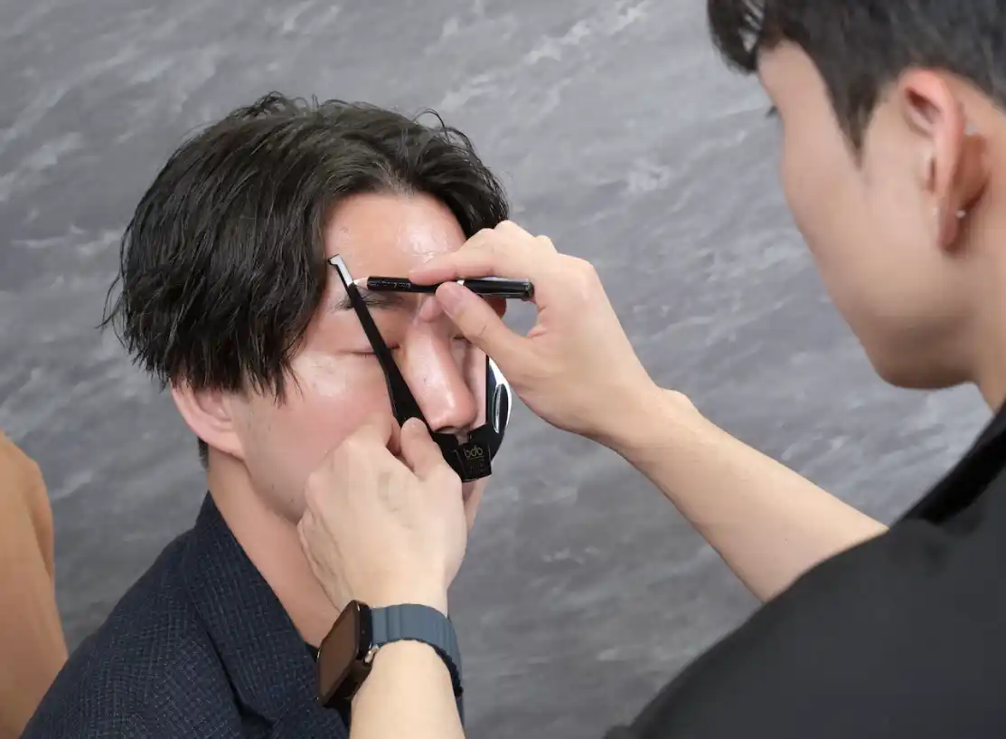 眉毛は一発勝負だからこそ、1本の調整が重要です。眉ラボではテープワックスを使用し、細かなデザインを実現し、さらに毛抜きで眉山や濃さを調整することで、理想の眉毛に仕上げます。 |