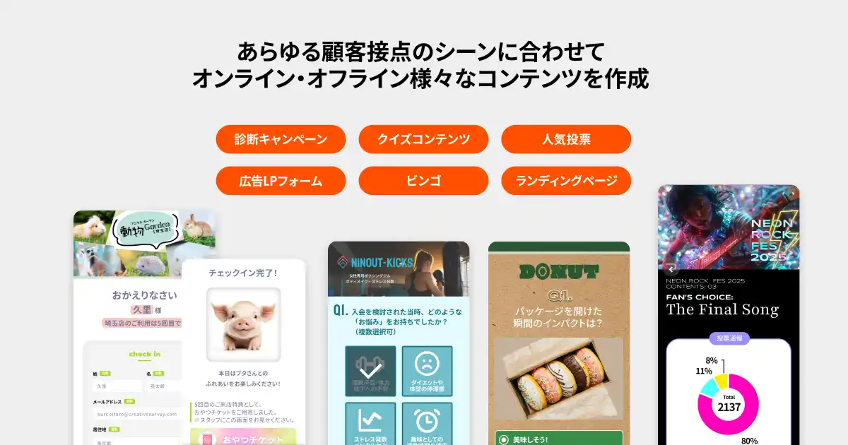 | 事業内容:あらゆる顧客接点で営業機会を逃さない「Ask One」、顧客とブランドのつながりを強くする「CREATIVE SURVEY」、ブランドとファンの繋がりを彩る「Fan Fan Fan」の開発・提供 | |||