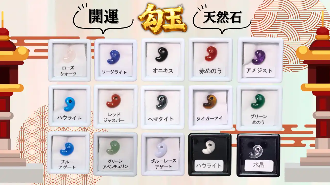 | それぞれの勾玉には異なる「石言葉」があり、獲得した石によって意味やメッセージが変わるため、新年最初の運試しとしても楽しめます。 | ||||||||