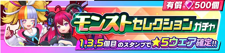 新年を記念して★5ウェアが確定の特別なガチャが登場します。2回限定で有償ジュエル500個でまわすことができます。2025年8月末までに登場した全ての限定ウェアが対象となります。 |