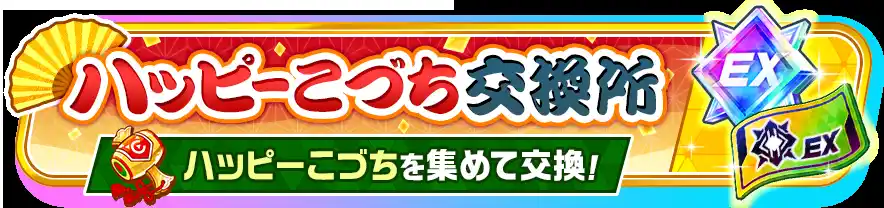 期間中にバトルをすると、「ハッピーこづち」を獲得できます。「ハッピーこづち」交換所で「八雲めでたきお正月EXスキルガチャチケット」や「EXスキルチップジェム」などと交換できます。また、2026年1月1日(木)からは新年を記念した特別なアイコンフレームを追加します。 |