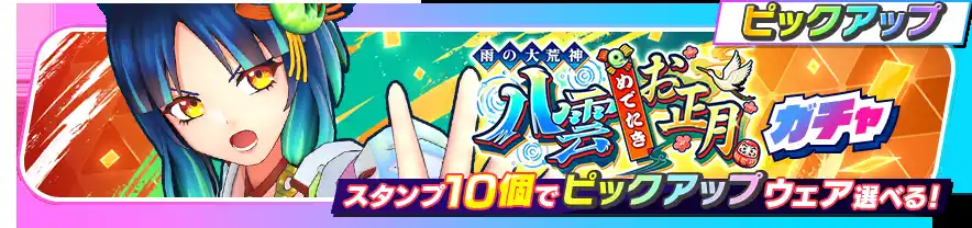 新イベント「雨の大荒神!八雲めでたきお正月」の開催にあわせ、新ヒーローとして『モンスターストライク』(以下『モンスト』)のヤクモ(CV:花澤香菜)がガチャに登場しております。また、ヤクモのイラストを使用したキャスター専用の新「EXスキルチップ」がピックアップされたガチャも登場します。バトルをすると手に入るアイテムと交換することで豪華報酬が獲得できる「ハッピーこづち交換所」も登場します。さらに、2026年1月1日(木)からは★5ウェアが確定の「謹賀新年ガチャ」も開催します。 |