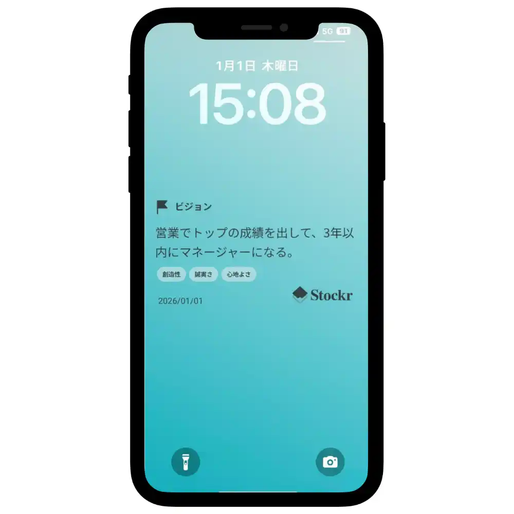 年始や誕生日、転職・異動・昇進などの節目に、「今年はこうありたい」「こんな自分を目指したい」とビジョンを設定。そのビジョンを画像として保存し、スマートフォンのロック画面などに設定することで、忙しい日常の中でも自然と目に入る環境をつくります。通知やタスクに追われる毎日の中で、ふと画面を見るたびに「自分は何を大切にしたかったか」を思い出せる、非通知型のリマインドとして活用ができます。 |