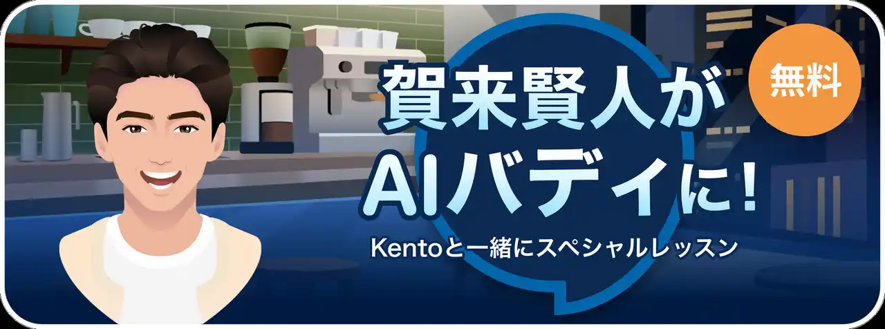 賀来賢人さんが学習者の英会話相手である「AIバディ」として登場するコンテンツ。ご本人の声を聞きながら、会話の内容や流れに応じて様々な表情に変化する“Kento”とのリアルな英会話をお楽しみいただけます。 |
