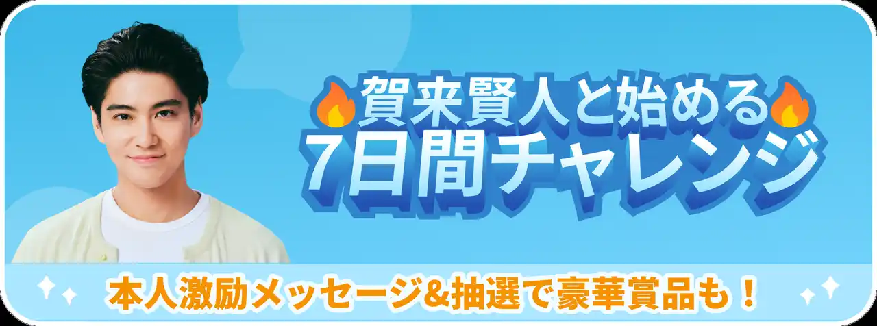 賀来賢人さん本人収録音声のメッセージが流れる「7日間チャレンジ」で英語学習者の7割が直面する“三日坊主”の回避も後押し