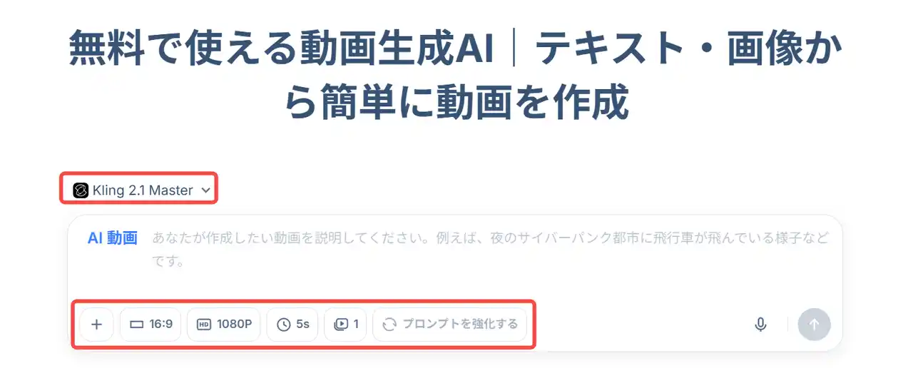 テキストプロンプト、画像、または両方を入力するだけで、AIが瞬時に解析・生成プロセスを開始し、わかりやすいUIでステップごとに仕上げていけます。複雑な編集操作は不要で、初心者でも簡単に高品質なAI動画生成が可能です。 |