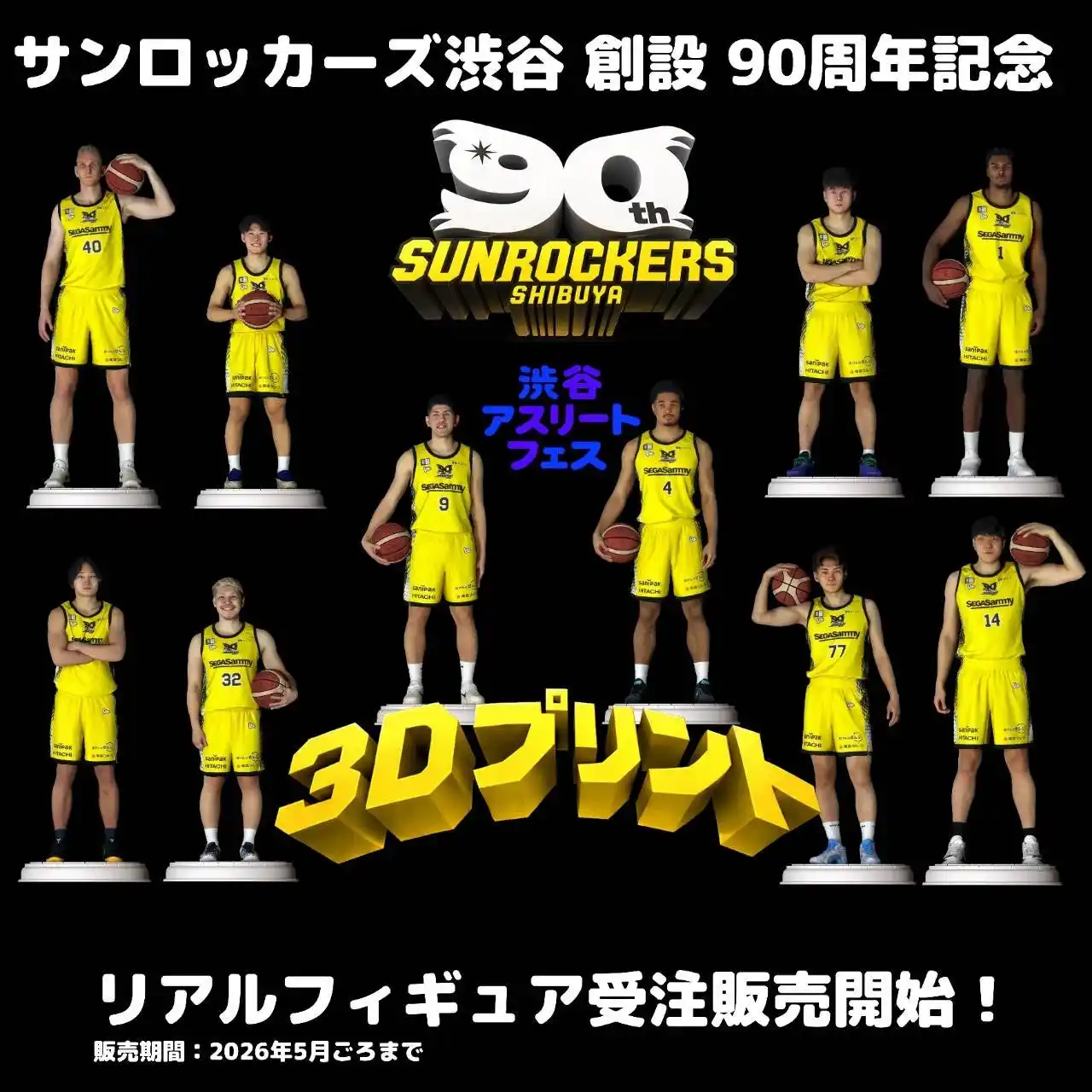 今回のポップアップ開催は、東京山九フェニックスのスポンサーであり、建造物や人物のフィギュア制作会社を運営している(株)グリニッジ・ワークスが主催する『渋谷アスリートフェス』の区画の一部を使用して開催する催しになります。同イベントでは、渋谷を拠点とするプロバスケットボールチーム「サンロッカーズ渋谷」の選手たちのフィギュアも販売されます。 |