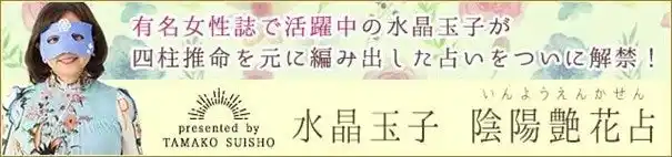 『水晶玉子 陰陽艶花占』は女性誌オファー独占!の人気的中占い師、水晶玉子による月額公式サイトです。「陰陽艶花占」は、古代中国で生まれた「四柱推命」をベースに、水晶玉子独自の視点で編み出されたオリジナル占いです。 |