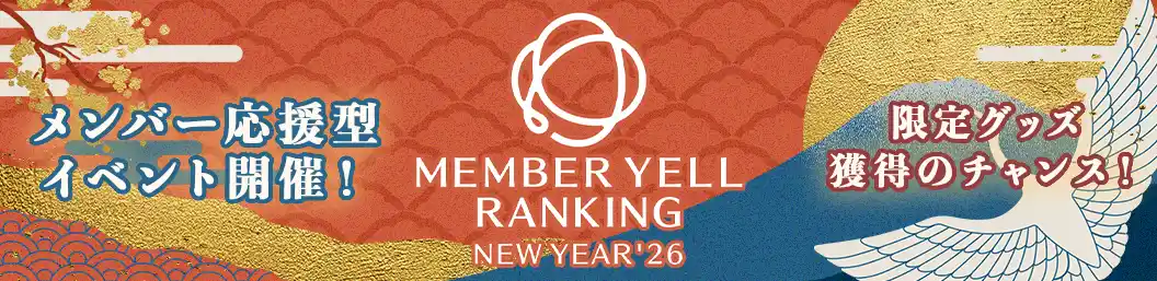 メンバー直筆のサイン入りアクリルお守りとチェキがランキング報酬となる、「MEMBER YELL RANKING NEW YEAR'26」を開催中です。 |