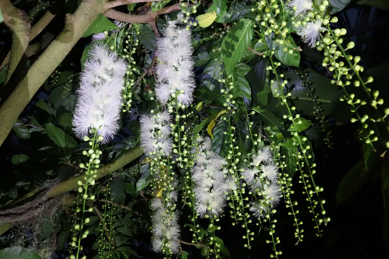 日が暮れてから開花し、翌朝には花が落ちてしまうことから“幻の花”と呼ばれているサガリバナ |