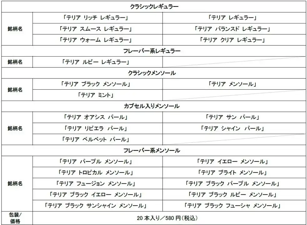 | 今回発売する「TEREA(テリア)」は下記の通りです。 | |||