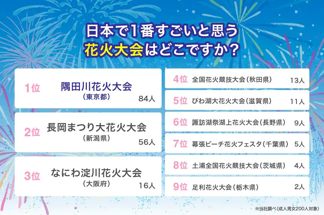 【人気の花火大会ランキング】すごいと思う花火大会を成人男女200人に調査