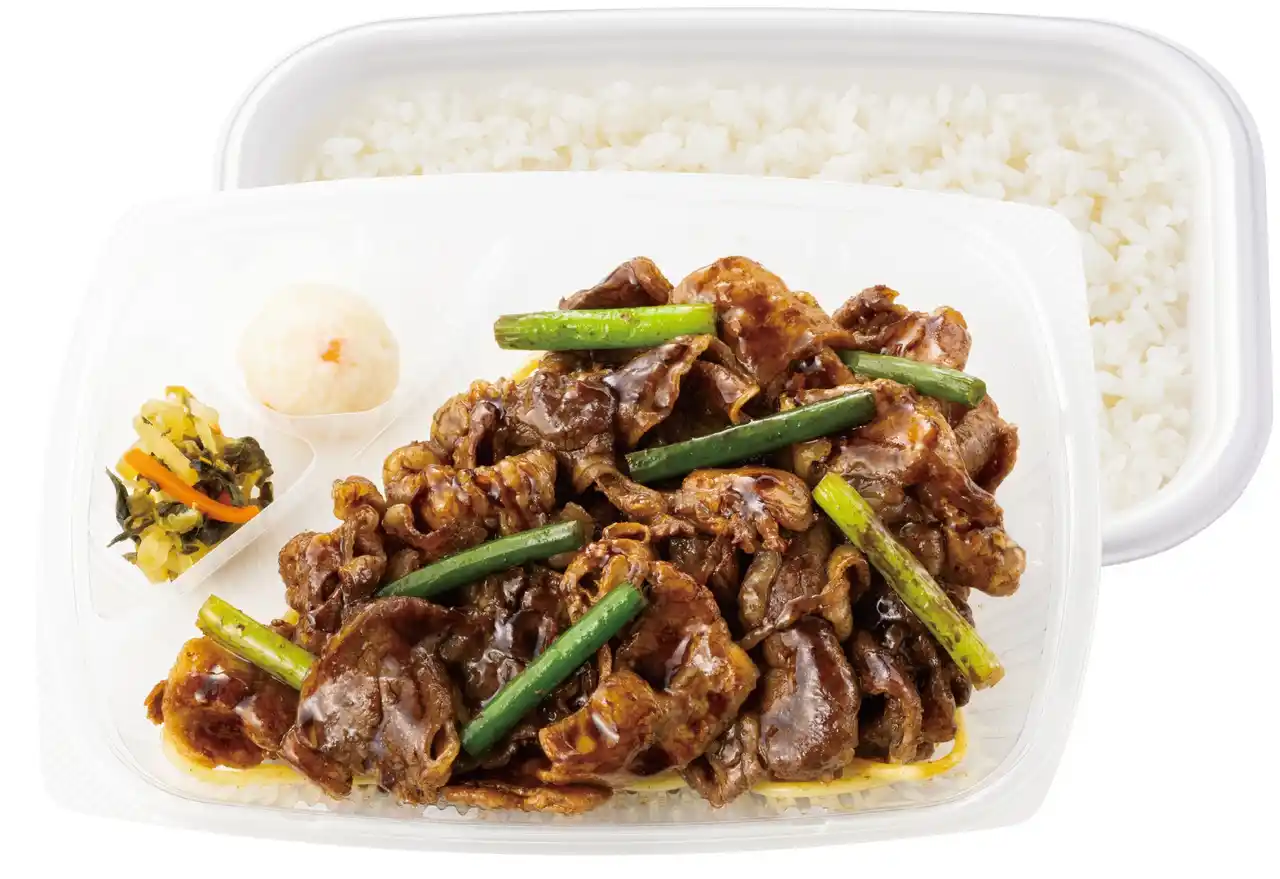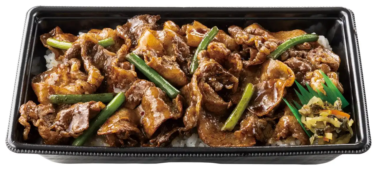 焦がし醤油と黒マー油香る 黒の牛豚ダブル焼肉弁当 950円 |