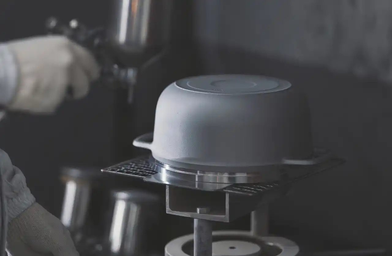 バーミキュラの鋳物ホーロー製品のホーローをきれいに剥がし、鋳物の表面を整えます。 |
