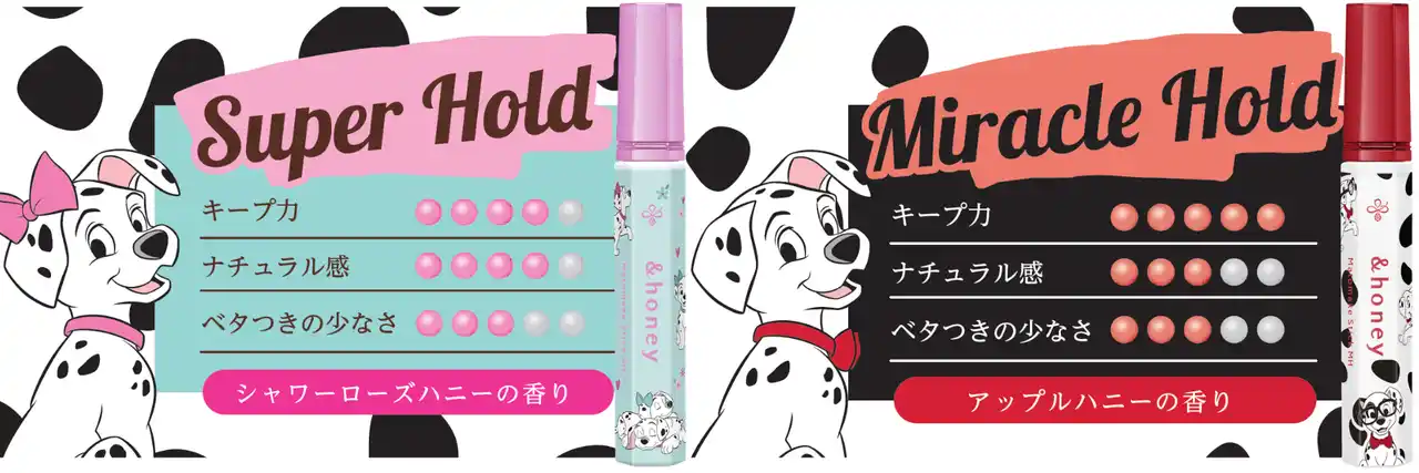 &honey マトメイク スティックシリーズより、『101匹わんちゃん限定デザイン』を2種同時発売いたします。 |