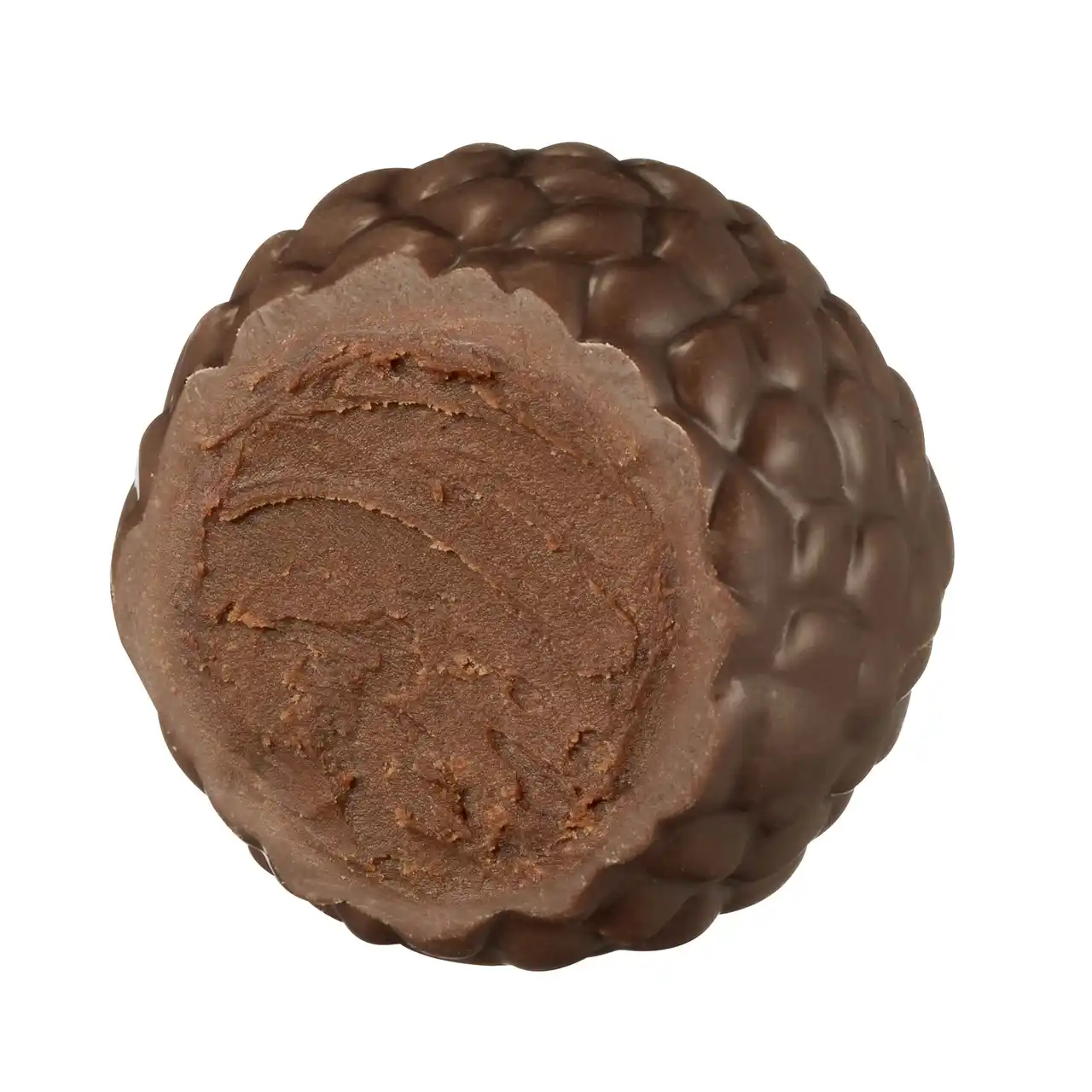 まろやかでクリーミーなミルクチョコレートのシェルに包まれているのは、香ばしく濃厚なヘーゼルナッツのガナッシュです。上品な口あたりの中に、ひと口で心を奪われるようなインパクトが広がり、ナッツの力強い香りと深みが余韻として残ります。 |