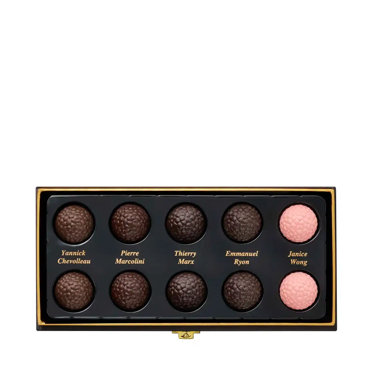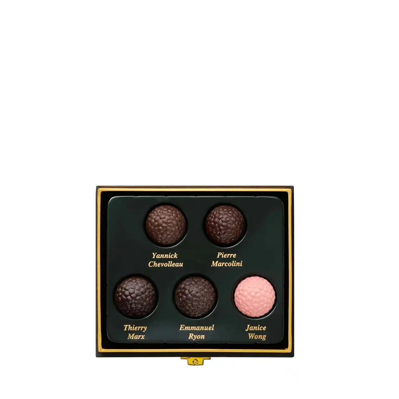 同一のフォルムでありながら、ひと粒ごとにそれぞれのスターシェフの感性輝く、カカオの深い味わい。それらを、真っ黒な黒トリュフのようなシックな箱に詰め、特別なアソートメントとしてお届けします。 |