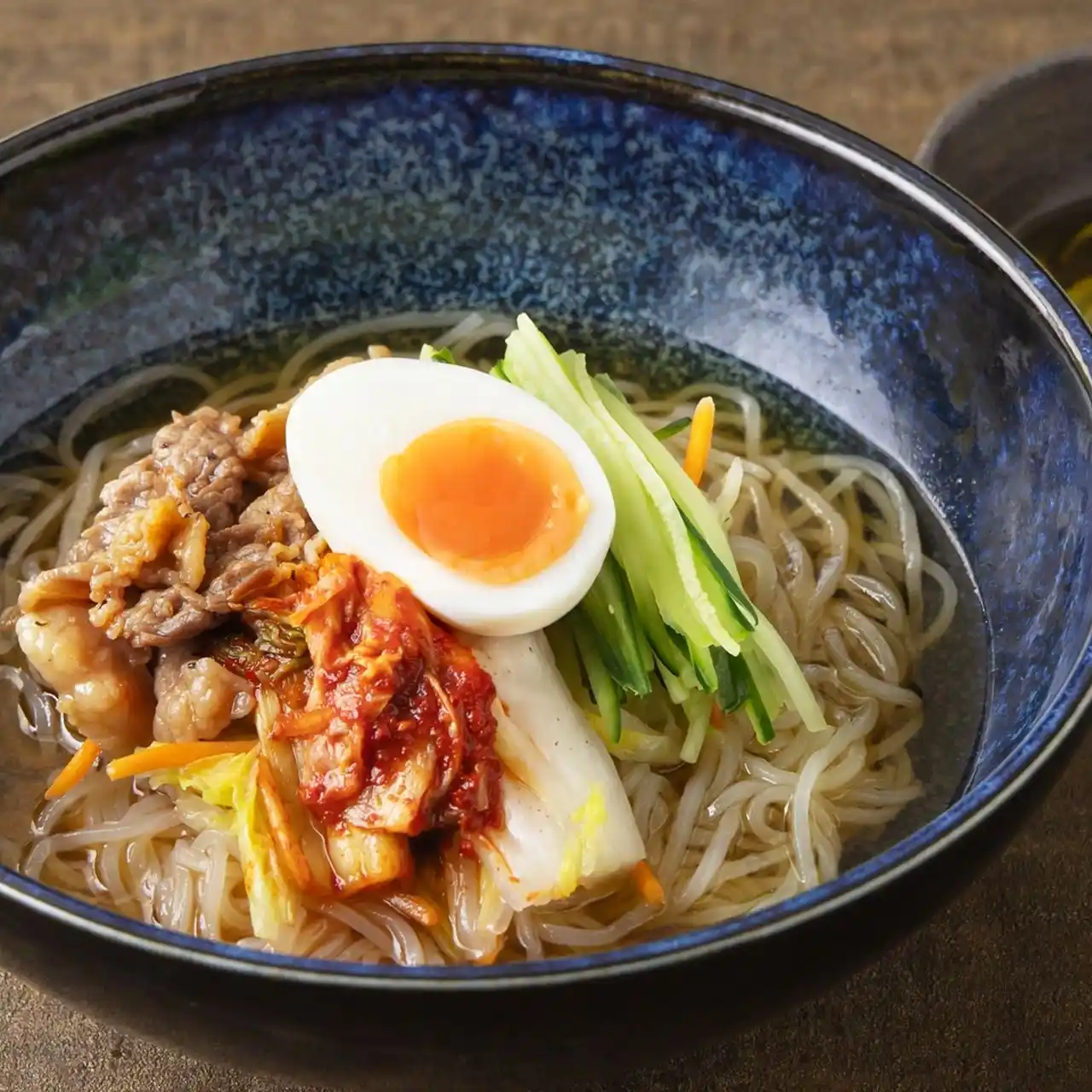 コシのある麺に、旨み が詰まったスープ。水キムチと肉の旨みが合わさりさらに美味しくなりました。 |