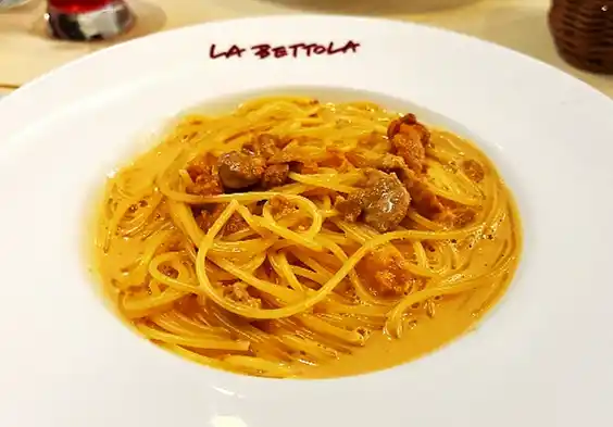 「ラ・ベットラ」で提供されている”新鮮なうにのスパゲッティ” |