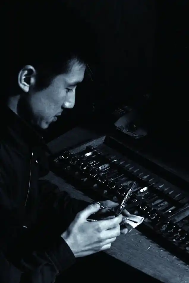 メンテナンスにおいては、新品とは違い劣化や研ぎによる減り・変形など、個体により様々な状態に変化しており、まずはその個体のポテンシャルを最大まで引き出します。そしてスタイリスト様の求める切れ味のイメージを再現します。これは製造が出来て初めて可能となります。 |