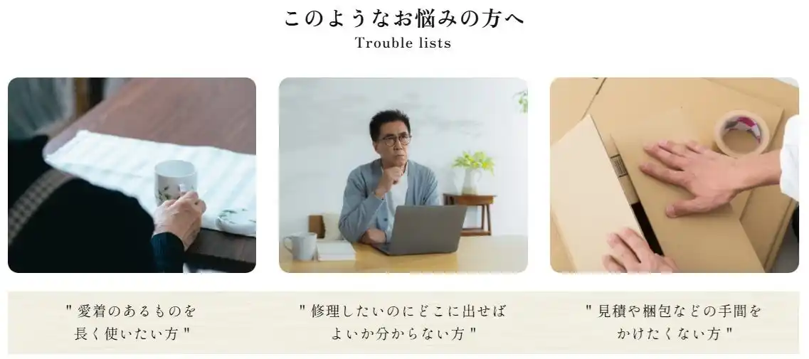 輪島塗、美容鋏、まな板、包丁など、直したい物を箱に入れて送るだけ。大切なモノを手放すのではなく、直して長く使う心をもう一度現代に