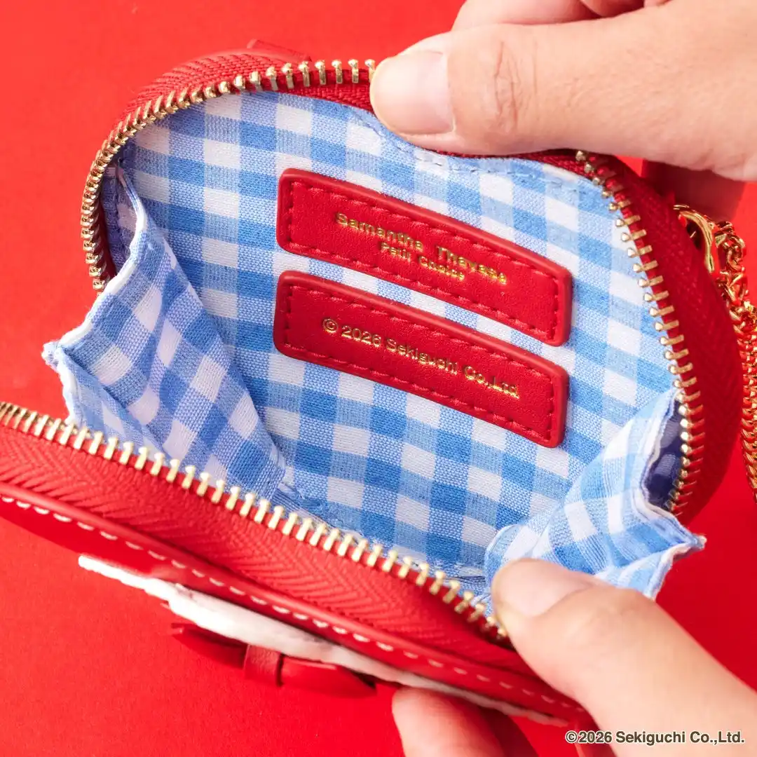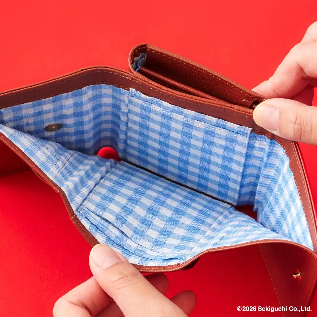 ポーチの裏地はギンガムチェックをデザイン。 |