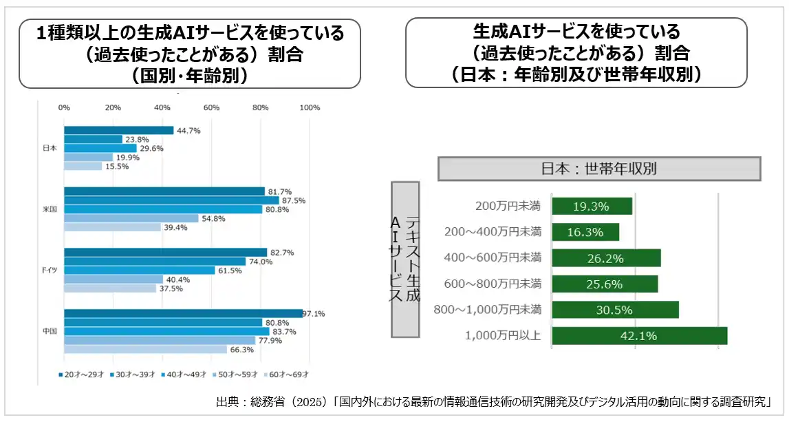 5. 日本は生成AI利用率が低い一方、高年収層は利用率が高い |