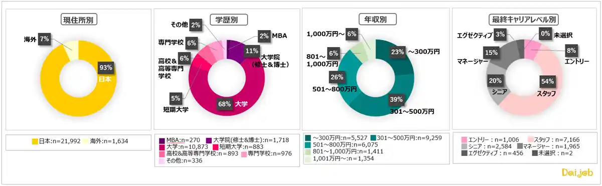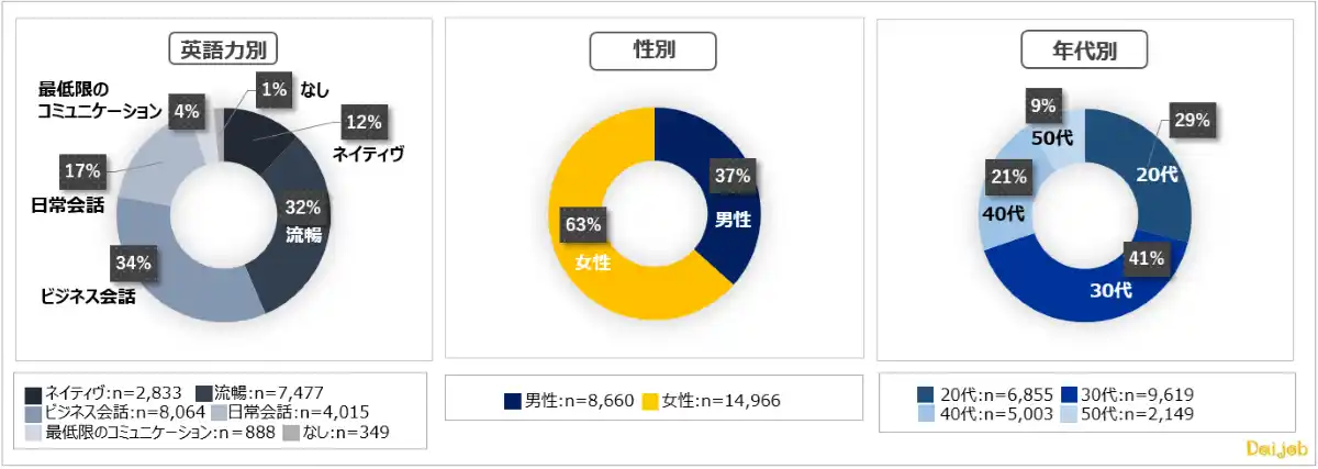 【人数】23,626人(男性・8,660人 女性・14,966人)【方法】Daijob.com登録者データから抽出 |
