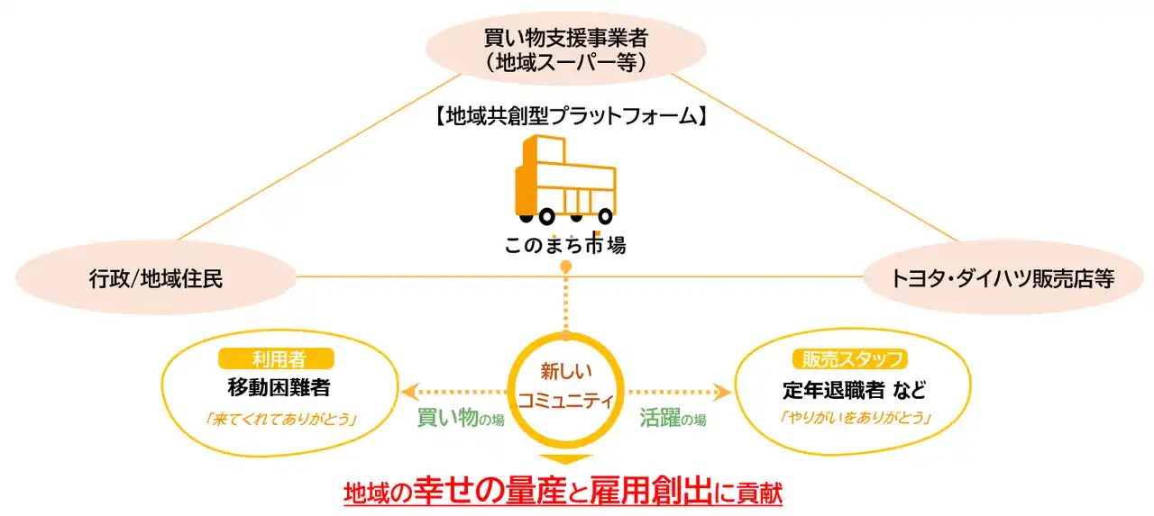 当社は、この「運営の難しさ」に真正面から向き合い、地域全体で買い物支援サービスを支える “共創の仕組づくり”と、トヨタグループのモビリティ技術で課題を解決する“使えるモビリティの実装”を進めています。 |