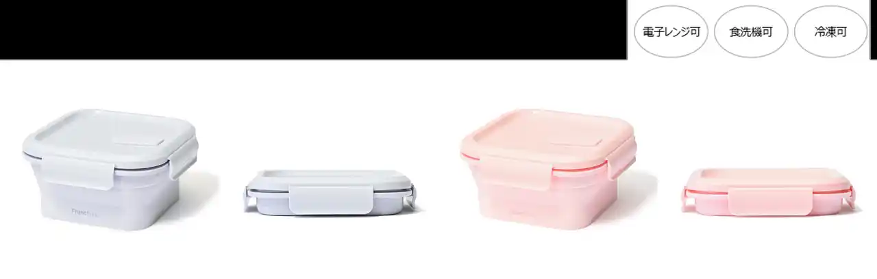 折り畳めるシリコン製のフードコンテナです。お弁当を食べ終わった後は本体をコンパクトに折りたためるため、持ち帰りの荷物がすっきり。冷凍保存が可能で、フタの弁を外せばそのまま電子レンジで温められるので、週末に作り置きしておけば時短にも繋がります。 |