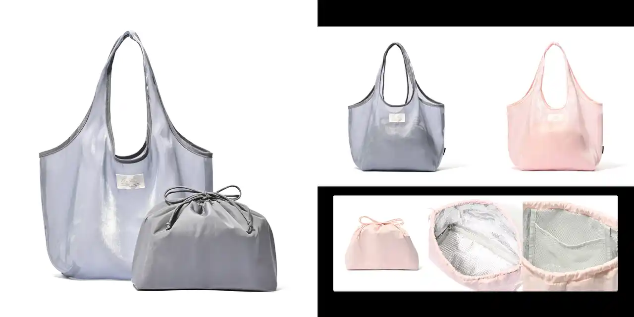 デザインバッグと保冷・保温機能を備えた巾着がセットに。トレンド感たっぷりなランチバッグ
