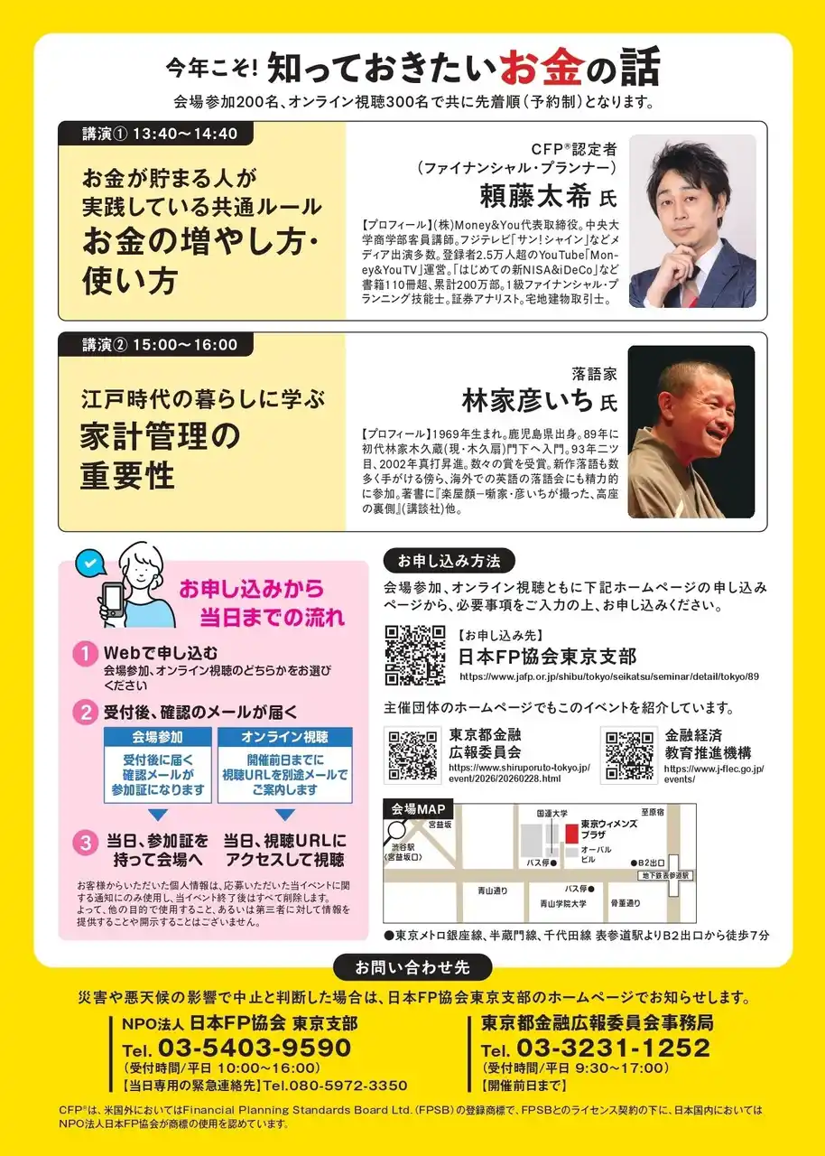 | 主催:日本FP協会東京支部、東京都金融広報委員会、金融経済教育推進機構(J-FLEC) | |||