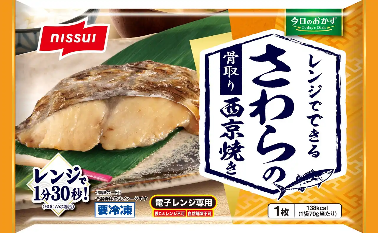 株式会社ニッスイ(代表取締役 社長執行役員 田中 輝、東京都港区)は、ご家庭の食卓に向けた惣菜を揃えた「今日のおかず」シリーズ(家庭用冷凍食品)の新商品として、「今日のおかず レンジでできる さばの塩焼き」「同 さわらの西京焼き」「同 あじの梅しそフライ」の3品を3月1日に発売します。人気の“焼き魚”や“魚のフライ”が、電子レンジであたためるだけで手軽に召しあがれる商品です。 |