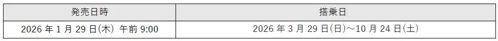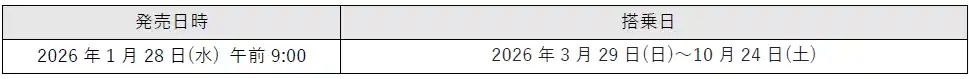 【2026年3月29日(日)~10月24日(土)ご搭乗分】 |