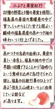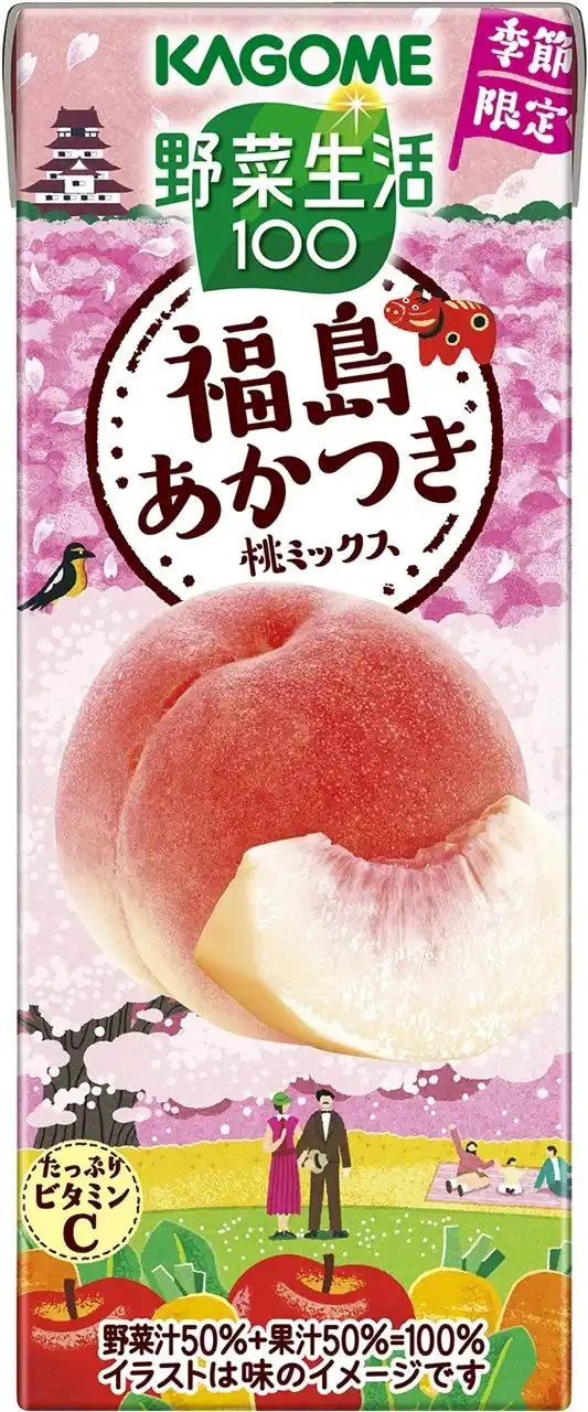 「野菜生活100季節限定シリーズ」から新たに発売する「野菜生活100福島あかつき桃ミックス」は、福島県の昼夜の寒暖差の中で育つ、しっかりとした甘さと程よい酸味の福島県産のあかつき桃の味わいの野菜・果実100%ミックスジュース※1です。あかつきの名前の由来は、果皮の美しい赤色と、福島の桃の中では早期に収穫できることから「夜明け」という意味を込めて名付けられた説と、福島の伝統行事のひとつである「信夫三山暁まいり」に由来している説などがあります。砂糖不使用で、たっぷりビタミンCを摂ることができます。朝食のおともや、リフレッシュしたいときにおすすめです。 |