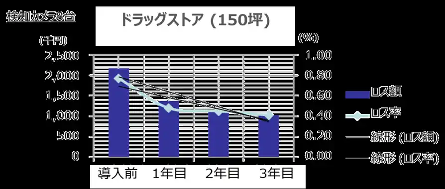 <参考資料:ドラッグストアにてAIシステムを連動させた不明ロスの推移(業務提携先提供データ)>