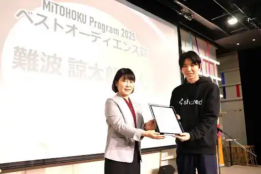 株式会社shared(宮城県仙台市)は、東北にゆかりがあり、新領域・未開拓領域のビジネスにチャレンジする人材を発掘・育成するプログラム「MiTOHOKUプログラム」第三期に参加。半年間に渡るキックオフキャンプやメンタリングを経て、2026年1月17日に行われた最終報告プレゼンテーションで最優秀賞とオーディエンス賞をダブル受賞しましたことをご報告いたします。