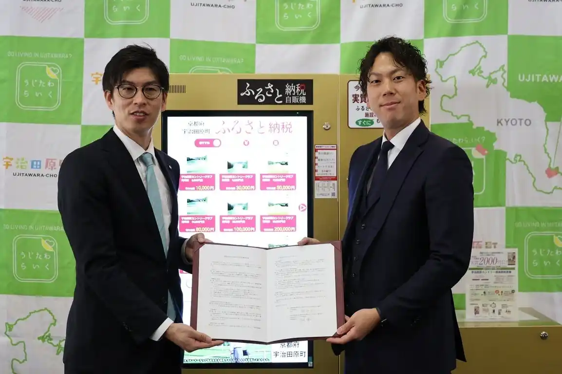 | このふるさと納税自動販売機の設置を機に、宇治田原町は宇治田原カントリー倶楽部と協力し、それぞれが持つ資源や特長を生かしながら多様な分野で包括的な連携を推進いたします。地域の様々な課題解決や、協働による事業を進めることにより、地域の持続的発展および住民サービスの向上に寄与することを目的に、協定を締結しました。 | |||