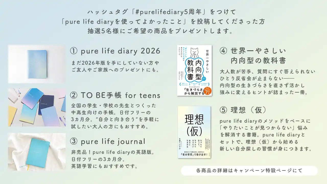 キャンペーン特設サイト:https://purelifediary.com/news/5thanniversary/