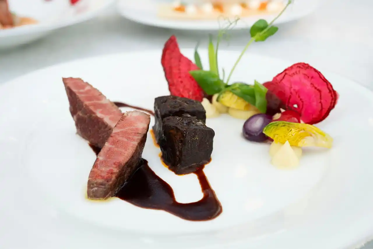 (メインディッシュ)黒毛和牛のグリルと牛タンの煮込み |