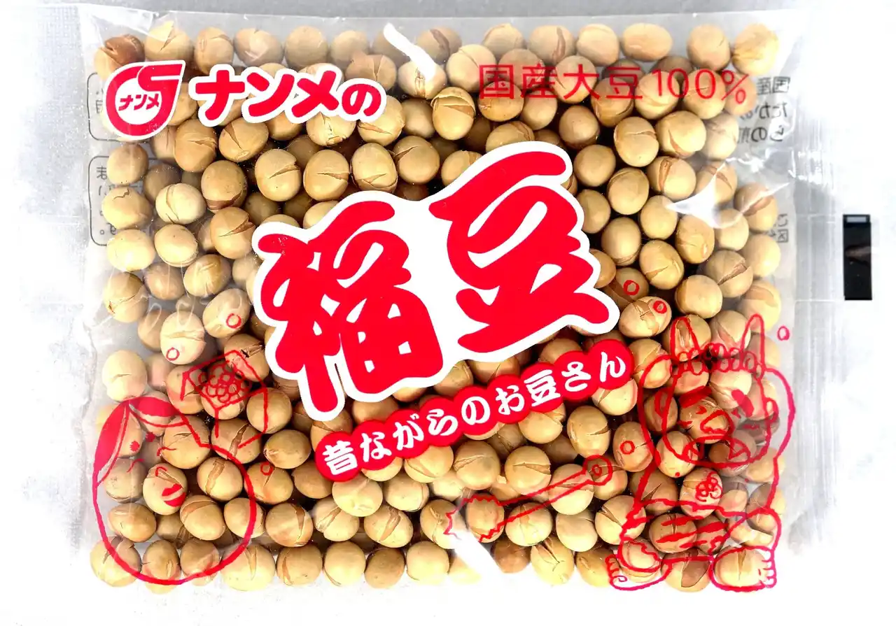 ナンメの「福豆」は、先代が無病息災を願う節分の福豆を通して、皆さまにささやかな福をお届けできればと考え販売を始め、昨年は約30000袋ご家庭にお届けしております。 |