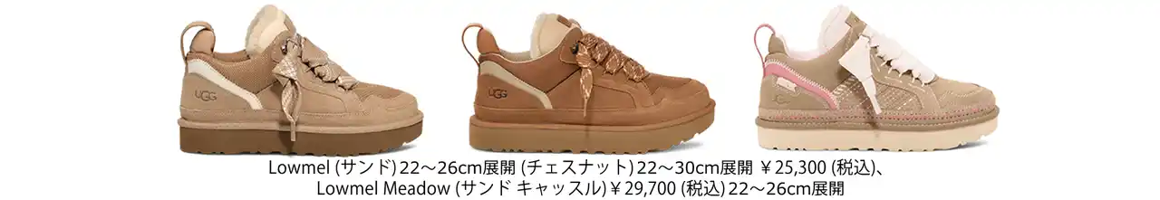 Tokyo (2026年1月20日) - 南カリフォルニアを拠点とするグローバルライフスタイルブランド UGG(a division of Deckers Brands [NYSE: DECK])は、Lowmel(ローメル)コレクション新作の発売とともに、UGGは2026年春キャンペーンを順次展開します。今シーズンの第1章として、ブランドのアイコンであるLowmelを、アンクル丈のバリエーションや多彩なカラー展開で、多様な美学を取り入れたスニーカーファミリーへと進化させました。Lowmelコレクションは人気の定番から新作まで、UGG公式サイトにてご覧いただけます。 |