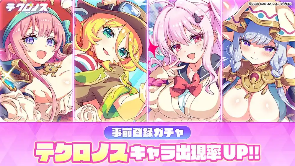 合同会社EXNOA(本社:東京都港区、CEO:東條 寛、URL:https://games.dmm.com)と株式会社テクロス(本社:京都府京都市右京区、代表:辻 拓也、URL:https://techcross.co.jp)は、4つの刻が交差するクロスヒロインRPG『テクロノス』(https://techcronoss.com)の事前登録者数が15万人を突破したことを発表。これによりサービス開始後にガチャチケット9枚の配布が決定した。 |