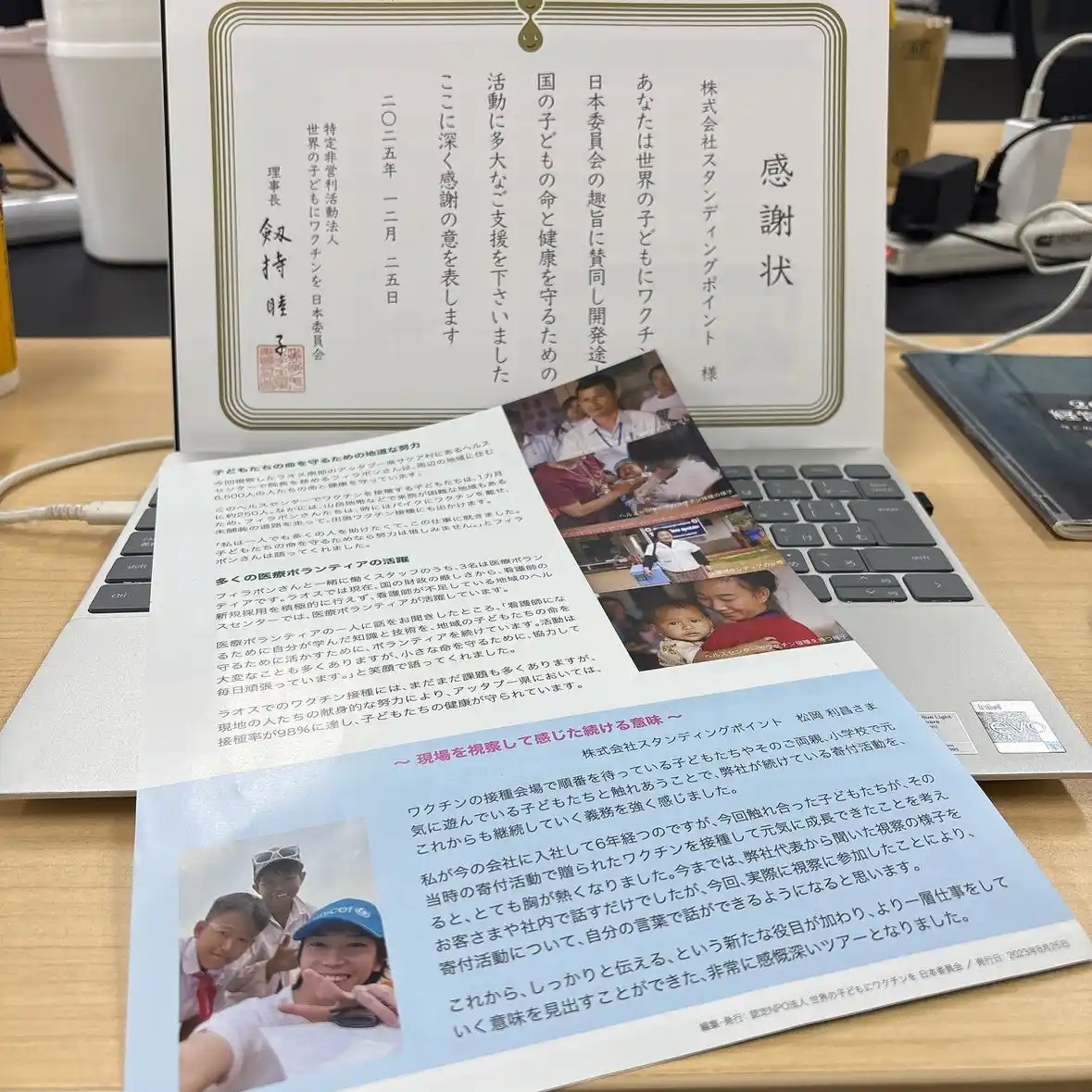 | このたび、JCVの事務局長および高橋様がスタンディングポイント本社に来社され、長年にわたるワクチン寄付活動への感謝状を代表して受領いたしました。 | |||||||||