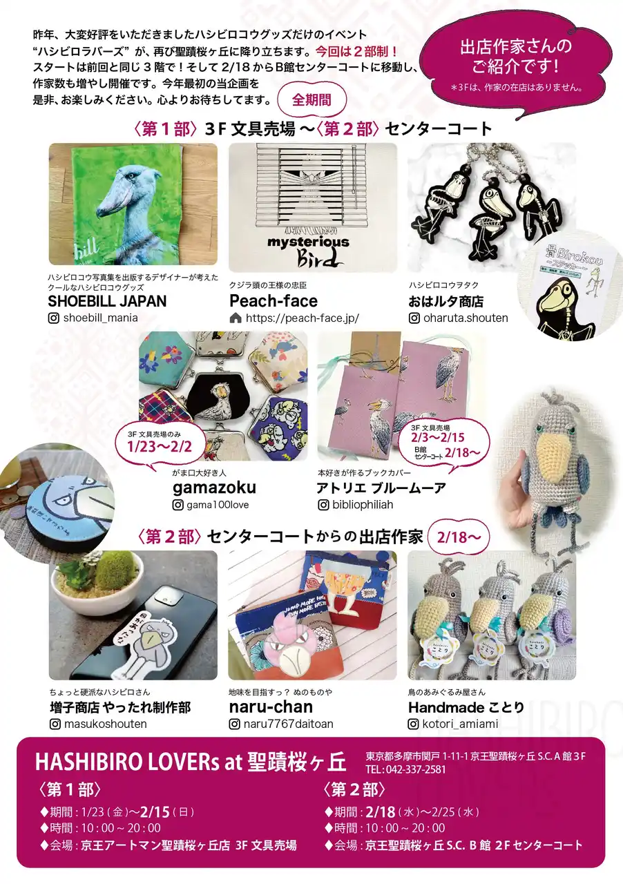 昨年大好評頂きましたハシビロコウを愛してやまないクリエーターによるハシビロコウ作品だけを集めたイベント「HASHIBIRO LOVERs at 聖蹟桜ヶ丘」が今年もやってきます! |