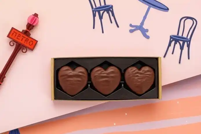アラン・デュカスの思い出に残る“おばあちゃん作ってもらったビスケット”をイメージした人気商品「ピュール・ブール」をハート型に焼き上げ、ショコラ オ・レでコーティング。 |